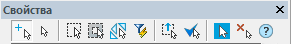 В верхней части окна Свойства, сразу под его заголовком, находятся кнопки режимов и команд выбора объектов: