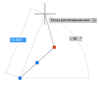 При построении линейного сегмента, дугового сегмента или окружности на экране отображаются их линейные и угловые размеры, относительно предыдущей точки. Размеры отображаются тонкой пунктирной линией. По мере перемещения курсора в поле чертежа, значения динамически отображаемых размеров непрерывно меняются, отображая текущие значения. Нажатием клавиши TAB можно перейти к нужному значению размера для его редактирования с клавиатуры. По окончании ввода нажать ENTER.